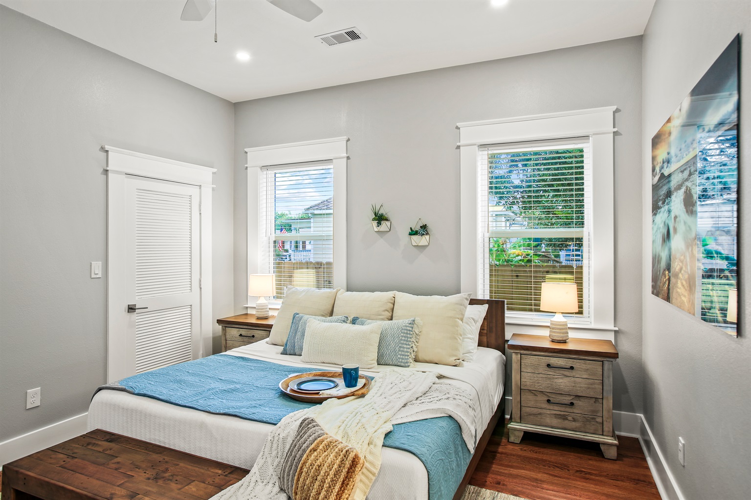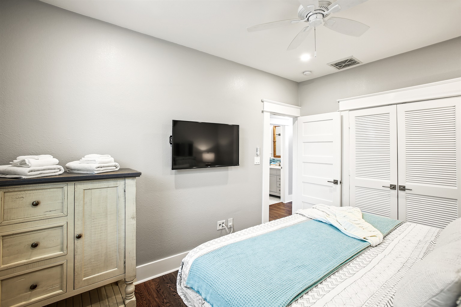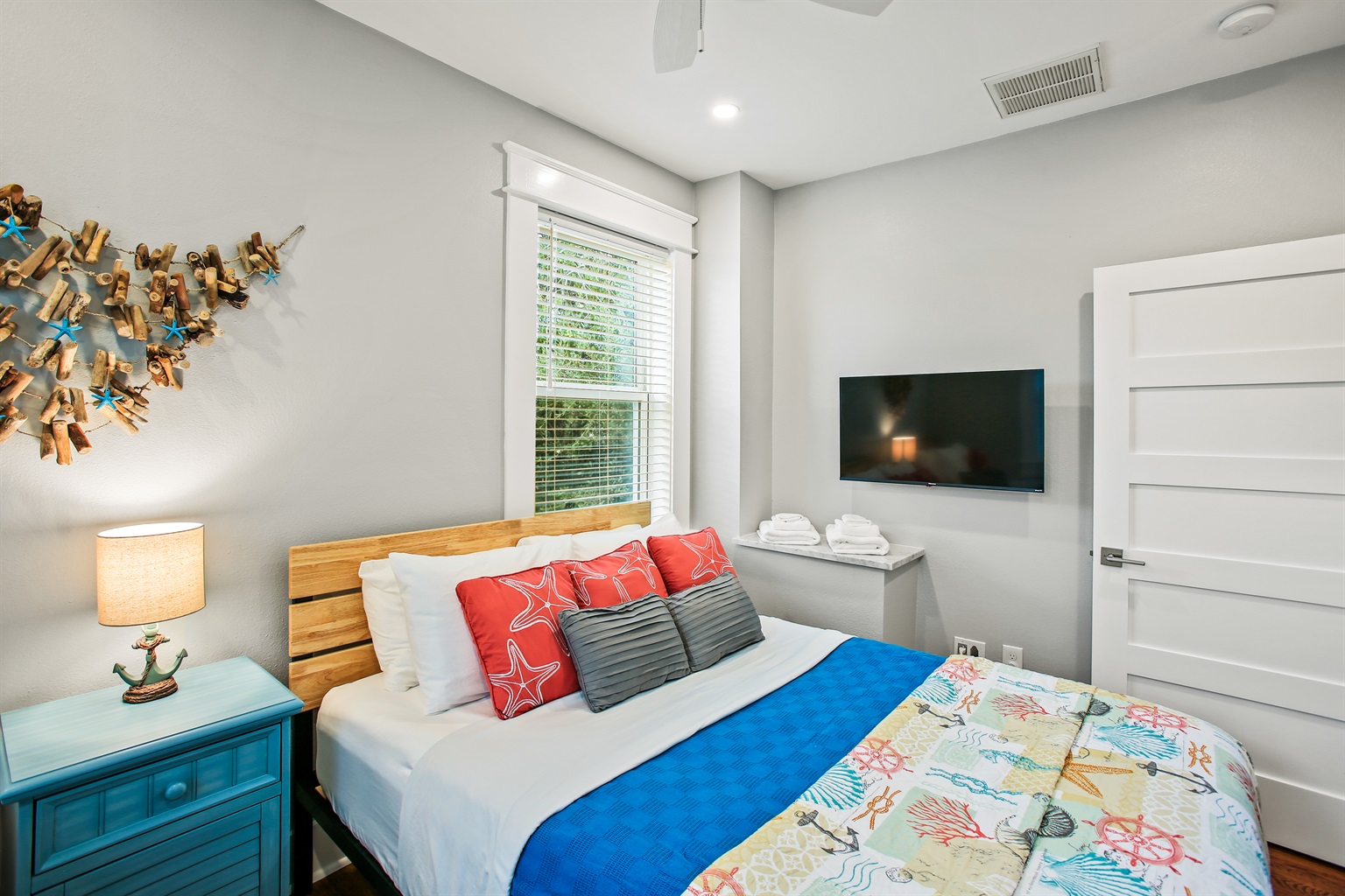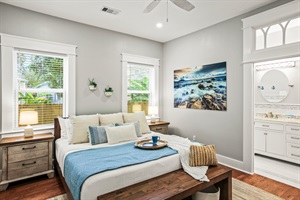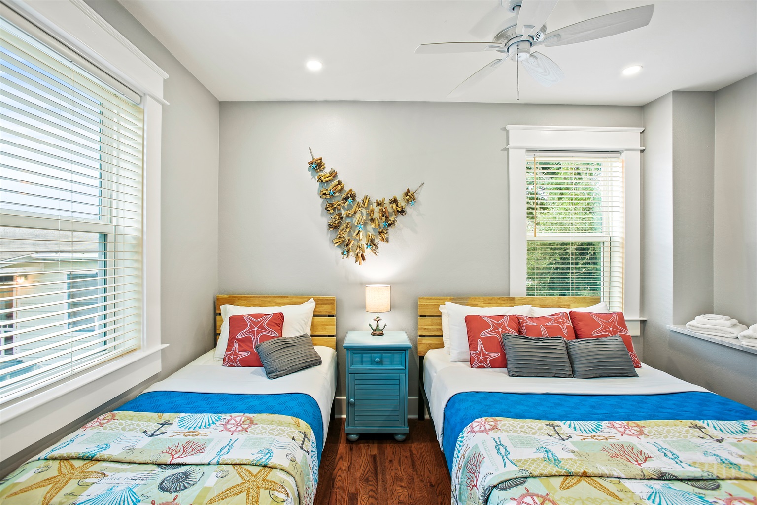 Upstairs find bedroom two with a king and bedroom three with a queen and a twin.