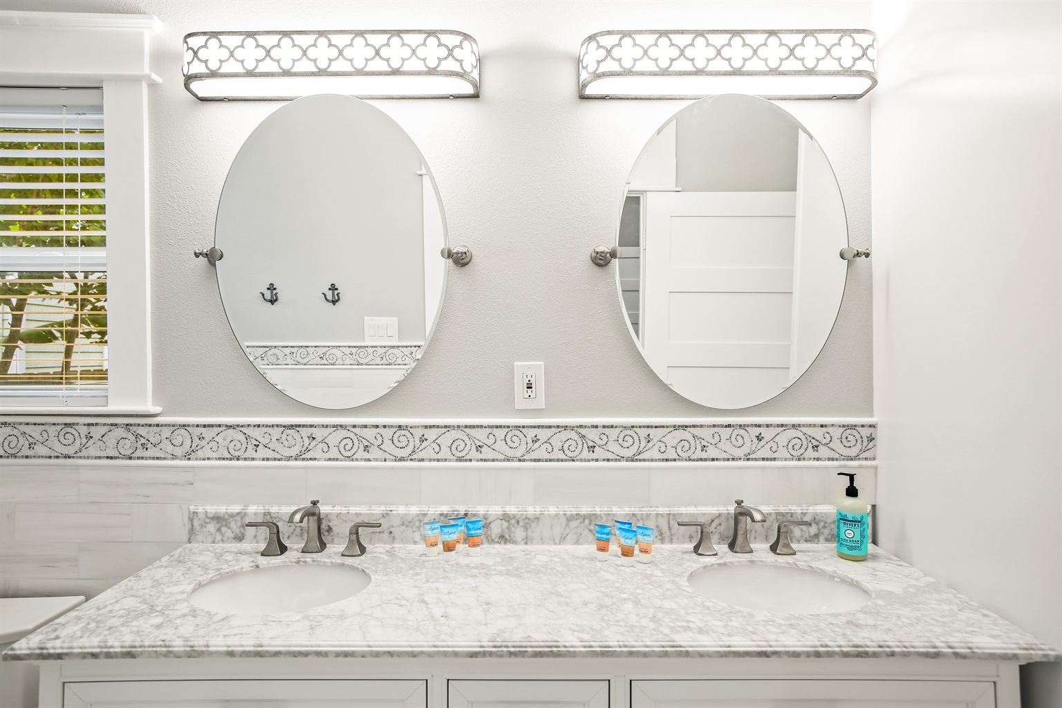After a day at the beach walk 5 minutes back to our single family home that has three bedrooms and 2.5 baths. Chefs kitchen includes a wine fridge to chill all your beverages.